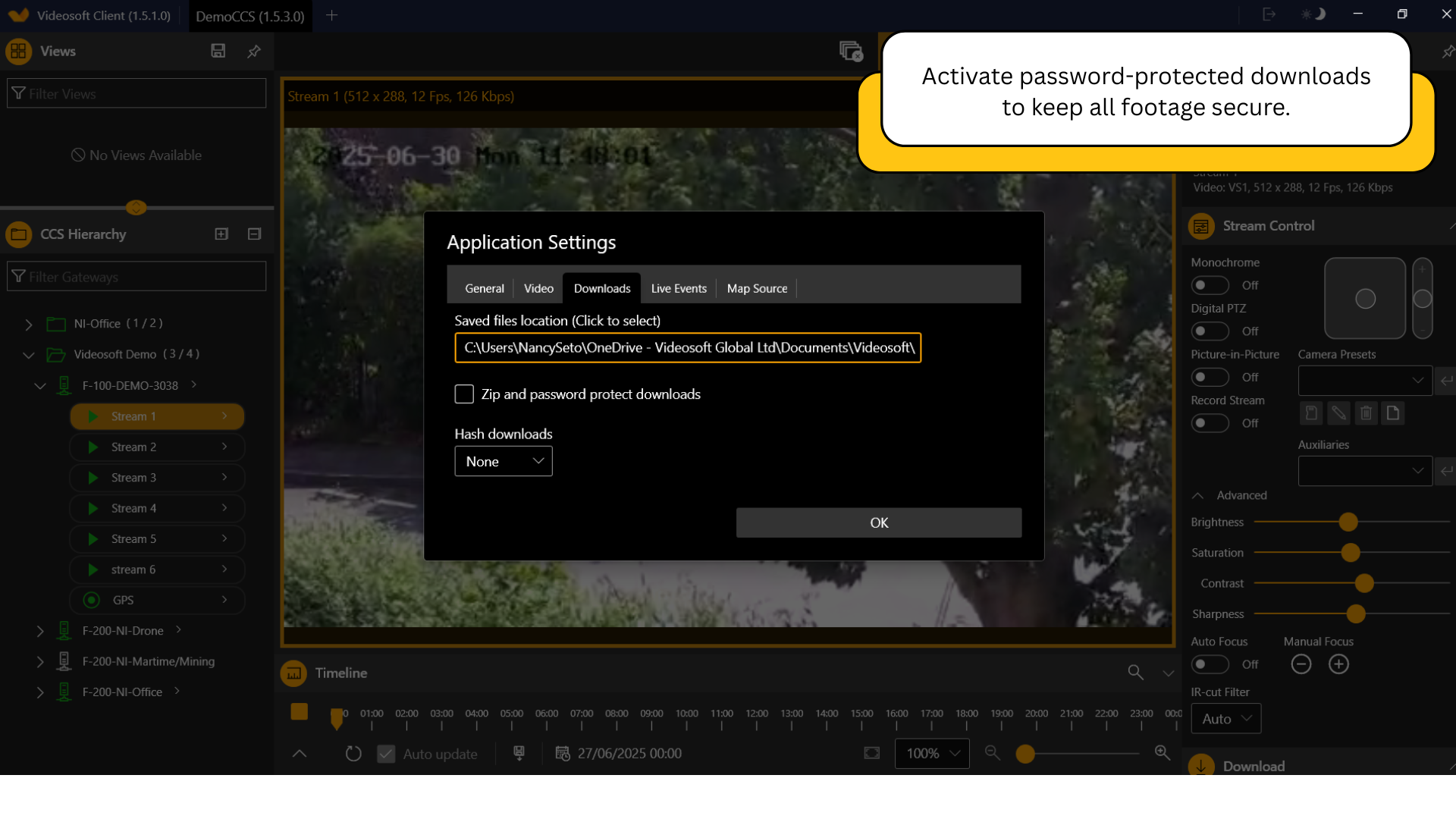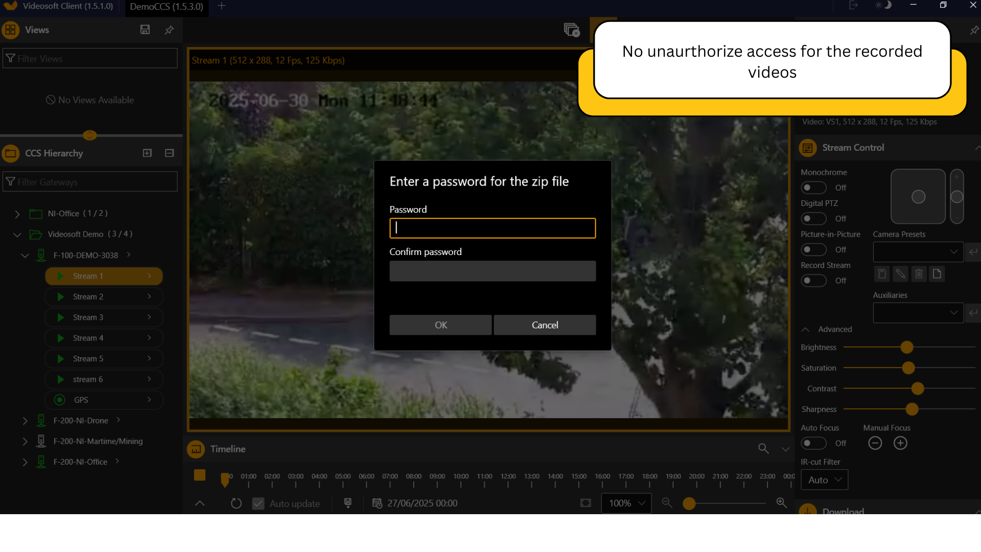 Password protection ensures only trusted individuals can download and view footage.